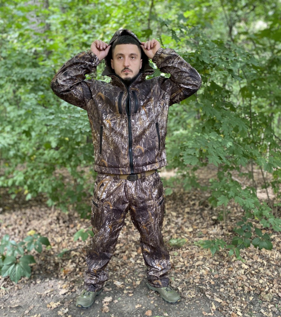 Особенностью данного костюма является то, что не смотря на осенние погодные условия вы всё равно будете чувствовать себя комфортно! Мембранная ткань не впитывает влагу и не пропускает ветер, но при это является дышащей, а флисовая подкладка будет удерживать температуру Вашего тела! Данная модель костюма отлично подойдёт для рыбалки, охоты или туризма.