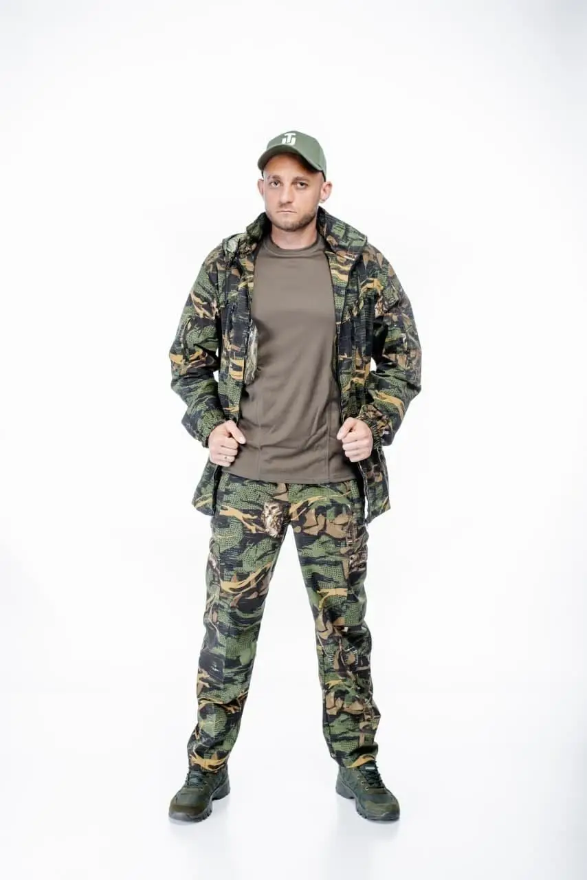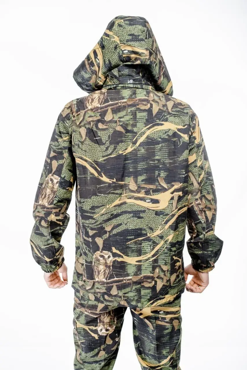Здесь есть множество карманов, так что вы с легкостью сможете носить все свои вещи при себе. Все фурнитура на костюме высокого качества, змейки и кнопки идеально работают. Окрас камуфляжа «Сова» обеспечивает эффективную маскировку среди растительности