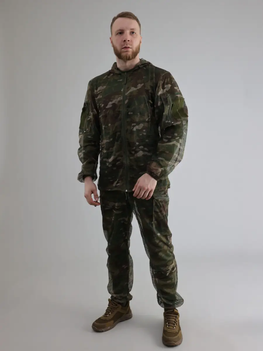 Особенностью данного костюма «Мультикам» является его материал производства, представляющий собой многослойную сетку. Она легка и хорошо пропускает воздух, поэтому гарантирует комфорт даже при длительном ношении. Модель отличается многофункциональностью и практичностью – оснащена молниями, которые обеспечивают доступ к основной одежде