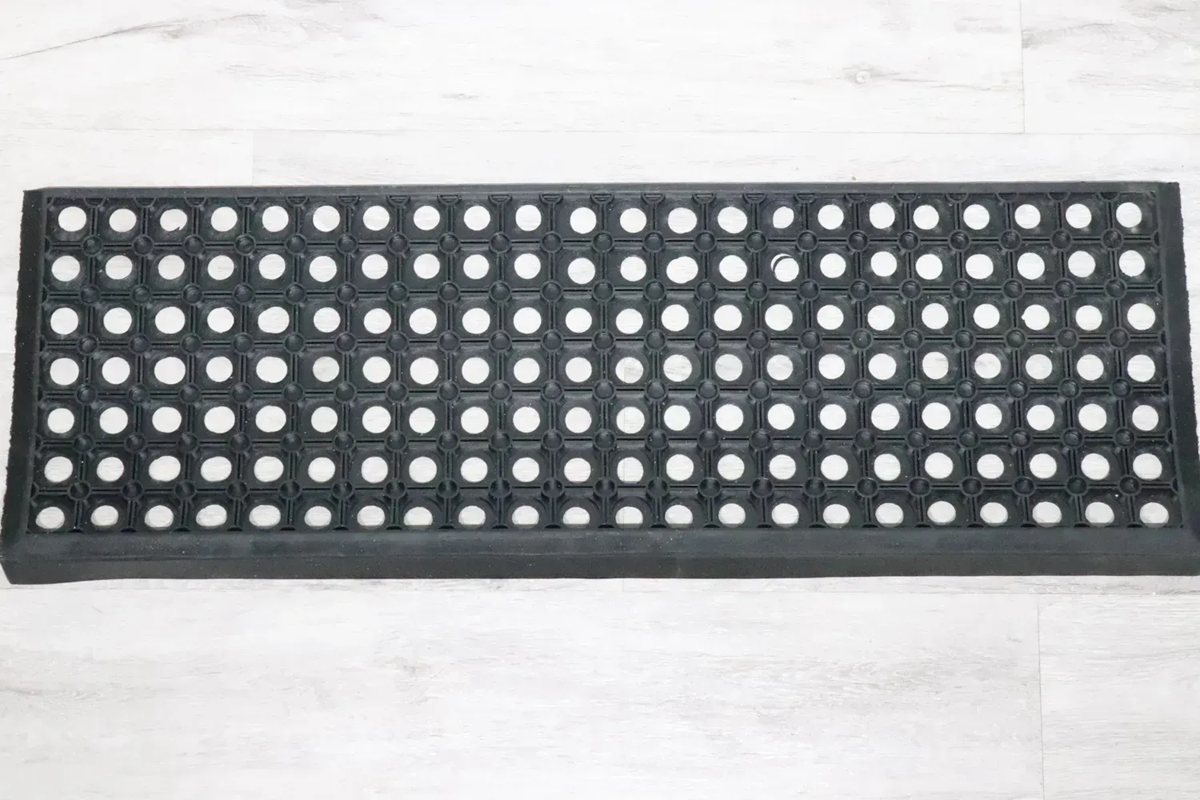 Коврик накладка на ступень резиновый в виде "сот" уменьшает опасность скольжения по лестнице, особенно в зимний период. Выполнен из высококачественной резины, не требует дополнительного крепления