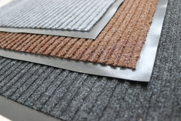 Коврик придверный в полоску рубчик 60*90 см. Это самые не дорогие и продаваемые коврики. хорошо впитывают влагу, резиновая основа не имеет насыщенного запаха. Как правило, в линейке 3 цвета - серый, коричневый и черный.