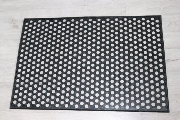 Коврик резиновый сота 60x90 или "ячеистый". Хорош тем, что грязь просыпается, для чистки достаточно поднять коврик и убрать грязь. Лучше всего подходит для наружного применения.