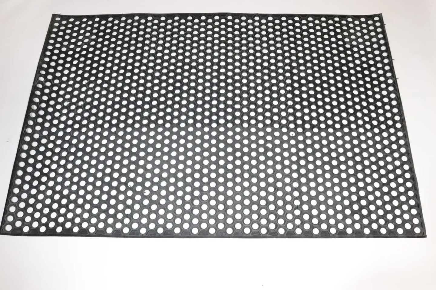 Коврик резиновый сота 96x140 см или "ячеистый". Хорош тем, что грязь просыпается, для чистки достаточно поднять коврик и убрать грязь. Лучше всего подходит для наружного применения.