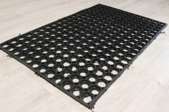 Коврик резиновый сота 60x90 или "ячеистый". Хорош тем, что грязь просыпается, для чистки достаточно поднять коврик и убрать грязь. Лучше всего подходит для наружного применения.
