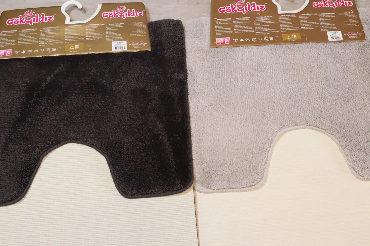 Набор ковриков для ванной и туалета Vonaldi 60x100 см турецкого производства. Выполненыиз акриловой синтетической ткани, на нижнюю сторону нанесена мягкая резиновая основа. Коврик под унитаз с вырезом.