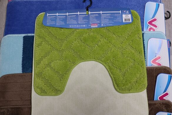 Набор ковриков для ванной и туалета Vonaldi 50x80 см турецкого производства. Выполнены из полиэстровой синтетической ткани, на нижнюю сторону нанесена мягкая резиновая основа. Коврик под унитаз с вырезом.