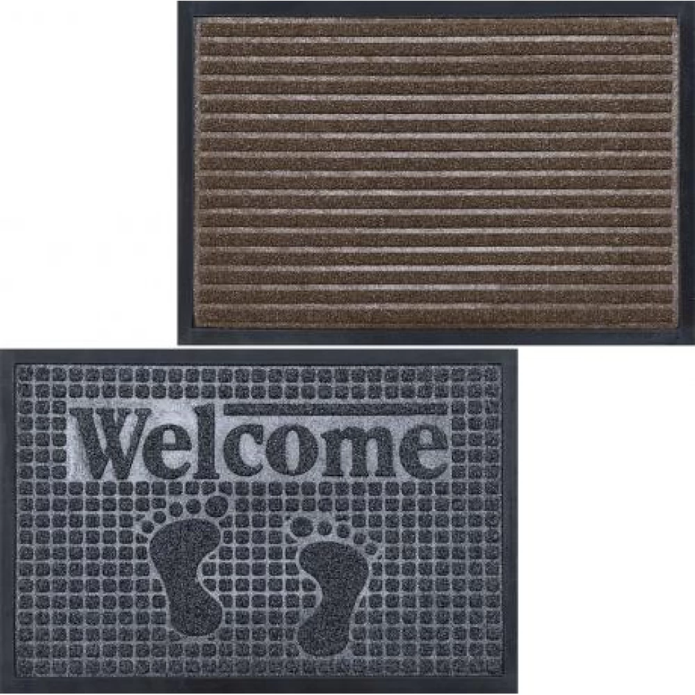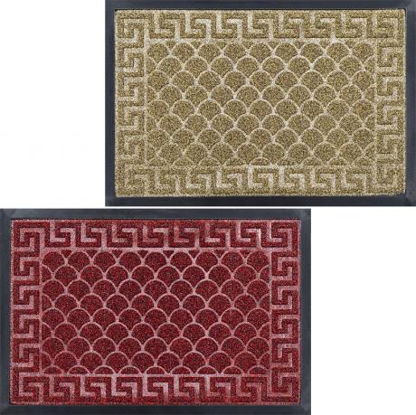 Гумовий прямокутний килимок розміром 40×60 см з тисненням, модель 2901-14. Підходить для використання у передпокої, біля вхідних дверей або в господарських зонах. По краях і знизу килимок гумовий, що забезпечує стійкість і запобігає ковзанню. Верхня поверхня жорстка, ефективно очищає взуття від бруду та вологи. Практичний, зносостійкий і зручний для щоденного використання.