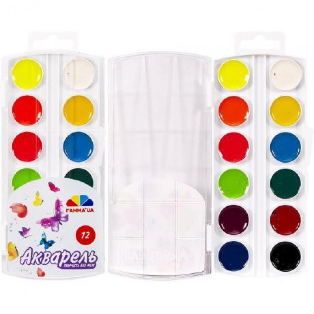 Акварель 12 кольорів, медова, в пластиковій упаковці. Широко використовуються для дитячої творчості, а також для художніх, оформлювальних і декоративно-прикладних робіт. 17 х 7,5 см