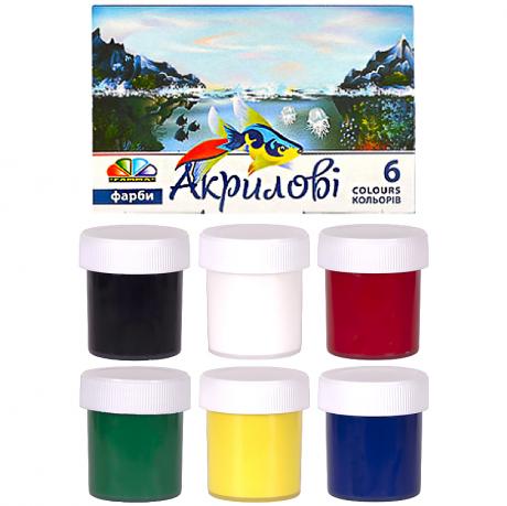 6 кольорів, обсяг фарби одного кольору 10 мл. Фрбою можна працювати не тільки на папері, а й на полотні, на тканині, картоні, фанері. Фарба широко застосовується в декораційного живопису, при виконанні різних ескізів. Обсяг: 60 мл (6х10 мл)