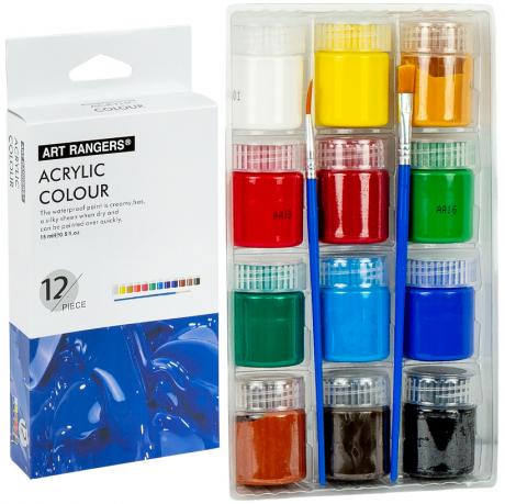 Набір 12 кольорів (15 мл/тюбик). Відкрийте світ творчості з водостійкими акриловими фарбами ART RANGERS®! Кремова текстура забезпечує легке нанесення, а після висихання фарби набувають шовковистого блиску та стають водостійкими. Швидке висихання дозволяє оперативно наносити шари. Ідеально для художників будь-якого рівня.