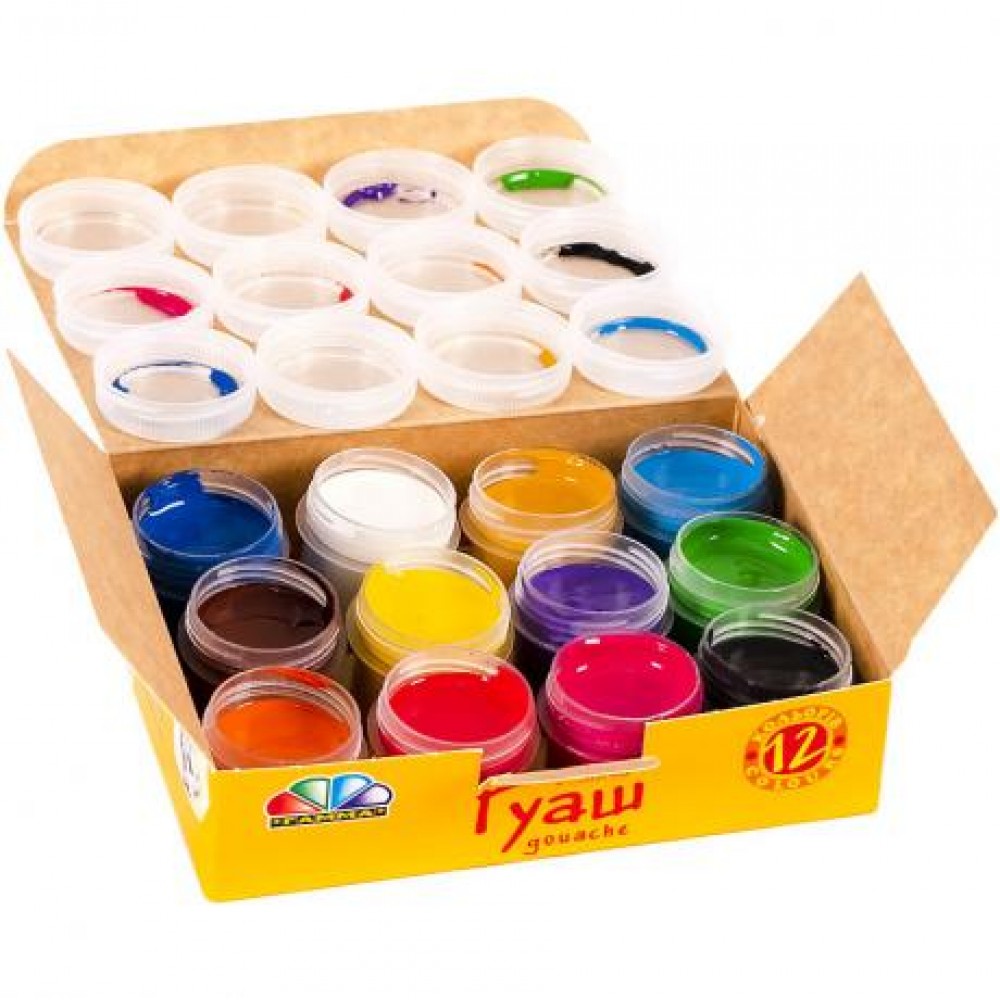 12 кольорів, обсяг фарби одного кольору 10 мл. Гуашшю можна працювати не тільки на папері, а й на полотні, на тканині, картоні, фанері. Гуаш широко застосовується в декораційного живопису, при виконанні різних ескізів. Обсяг: 120 мл (12х10 мл)