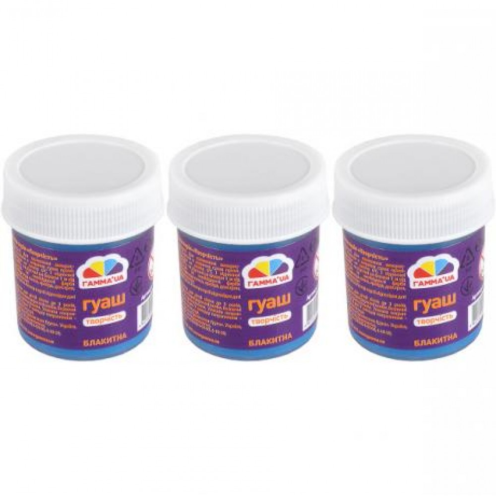 Гуаш Блакитна обсяг фарби 40 мл. Гуашшю можна працювати не тільки на папері, а й на полотні, на тканині, картоні, фанері. Гуаш широко застосовується у декораційному живопису, під час виконання різних ескізів. Обсяг: 40 мл