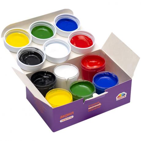 6 кольорів, обсяг фарби одного кольору 20 мл. Фрбою можна працювати не тільки на папері, а й на полотні, на тканині, картоні, фанері. Фарба широко застосовується в декораційного живопису, при виконанні різних ескізів. Обсяг: 120 мл (6х20 мл)