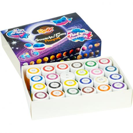 Завдяки якісним компонентам цей набір належить до преміум-класу серед учнівських фарб. Завдяки високій щільності та насиченості кольорів гуаш підходить навіть для напівпрофесійного та професійного використання.