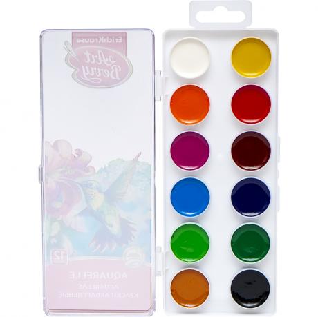 Це акварельні фарби від Art Berry. В наборі 12 різних кольорів. Модель цих фарб - EK 41724. Розмір набору становить 20х8 см.