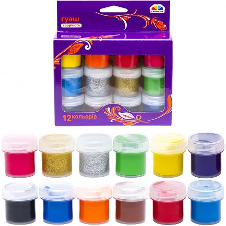 Набір включає 12 кольорів гуаші, кожен по 10 мл. Ці фарби можна використовувати не тільки на папері, але й на полотні, тканині, картоні та фанері. Вони широко використовуються в декоративному живопису та для створення ескізів. Загальний обсяг: 120 мл (12х10 мл).