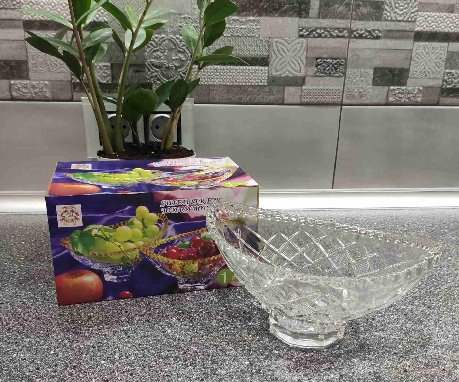 Фруктовница из цветного стекла на ножке, 33см, цвет — янтарный с розовым