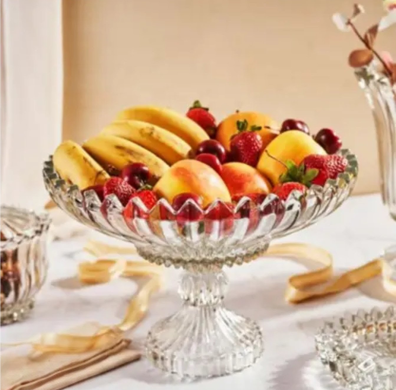 Фруктовница из цветного стекла на ножке, 33см, цвет — янтарный с розовым