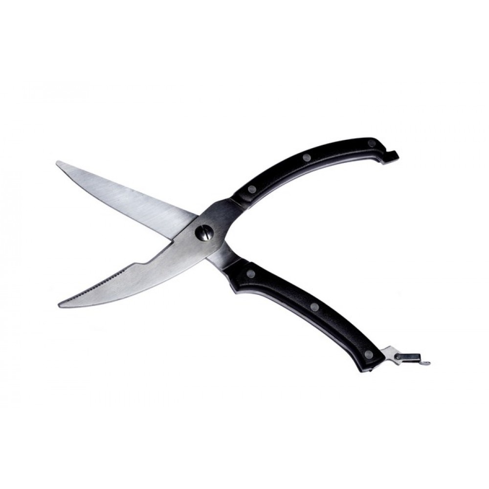 Подібні ножиці на кухні використовують для розтину упаковок, розрізання різних ниток та шнурів (які застосовуються, наприклад, при приготуванні деяких м’ясних страв) та багатьох подібних, цілком звичайних для ножиць справ.А ще вони застосовуються для нарізки зелені, розбирання курки, риби, приготування креветок, восьминогів.