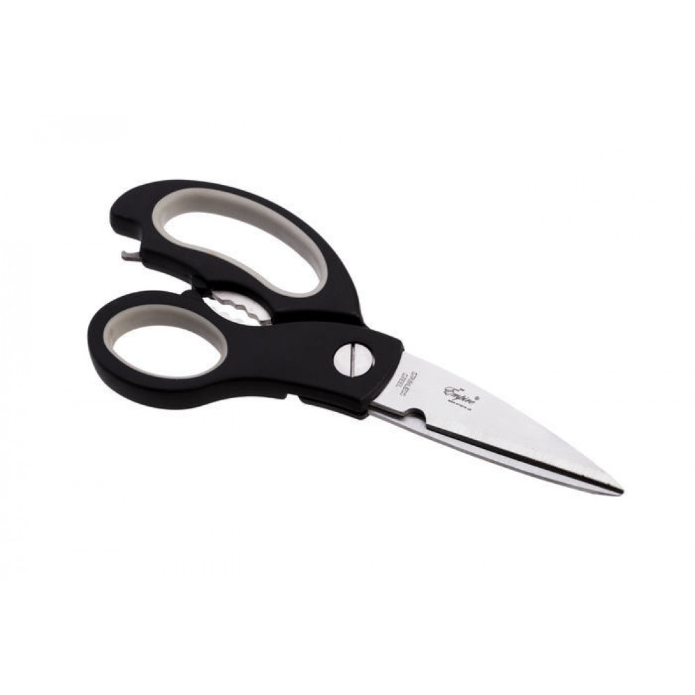Подібні ножиці на кухні використовують для розтину упаковок, розрізання різних ниток та шнурів (які застосовуються, наприклад, при приготуванні деяких м’ясних страв) та багатьох подібних, цілком звичайних для ножиць справ.А ще вони застосовуються для нарізки зелені, розбирання курки, риби, приготування креветок, восьминогів.