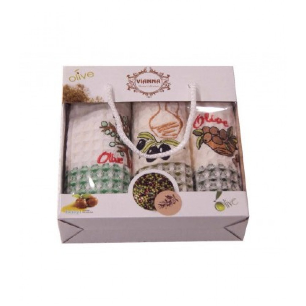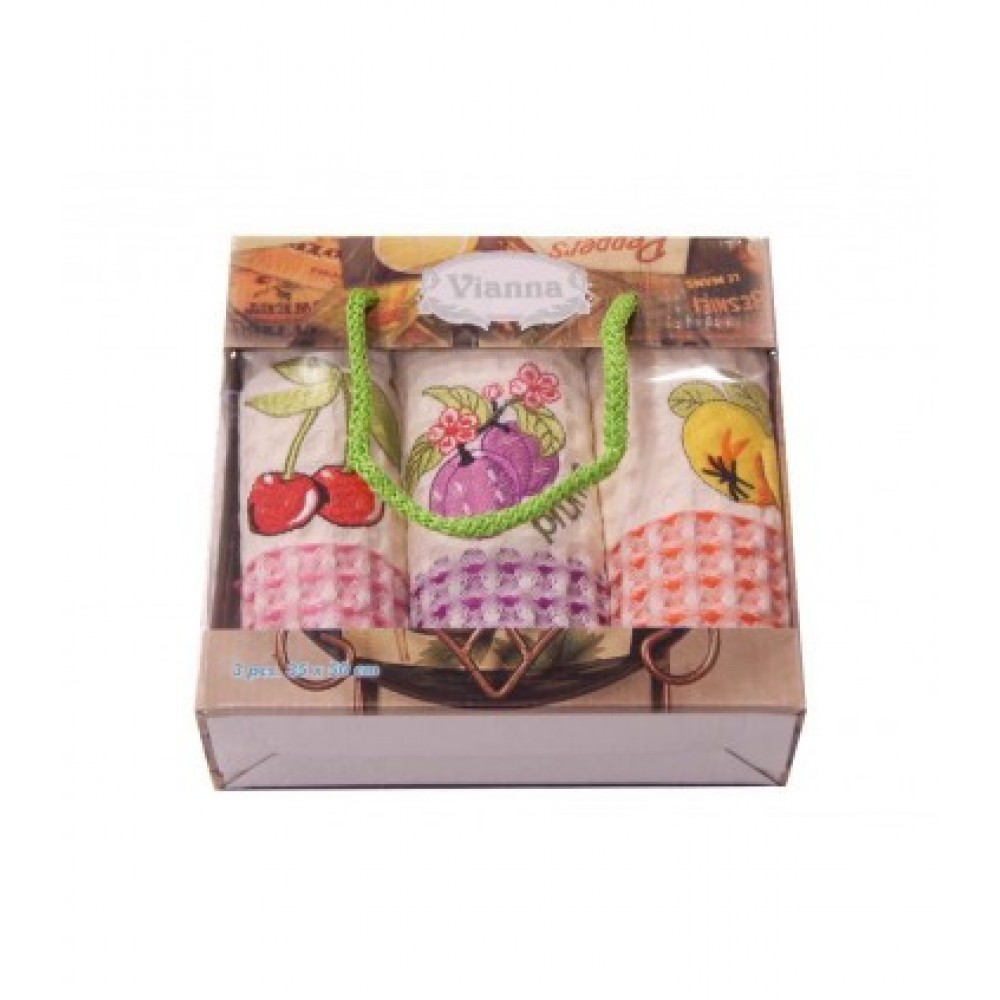 Набор вафельных салфеток Vianna 35*50 3 штуки, от ведущего турецкого произодителя домашнего текстиля, изготовленны из 100% натурального хлопка. Произведены в соответствии с высокими европейскими стандартами качества и безопасности. Комплектуются в красивую подарочную упаковку от производителя. Текстиль имеет не только практическое, но и эстетическое значение. Салфетки украшены качественной вышивкой на кухонную тематику. В ассортименте рисунки такого рода: выпечка, фруктовые натюрморты и плоды оливы. Прекрасно дополнят и украсят любой интерьер кухни и столовой. Будут радовать не только соей функциональностью, но и красивым внешним видом. Всегда будут выглядеть опрятно и аккуратно, создавая атмосферу тепла и домашнего уюта. Подчеркнут хозяйственность и заботливость хозяйки. Сделает домашний быт более комфортным и удобным.