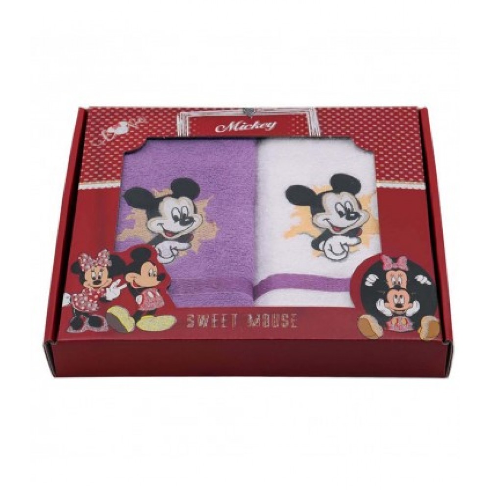 Салфетки махровые Vianna 40x60 2 штуки (Мышки) комплектуются в презентабельную подарочную коробку с фирменным логотипом. В набор входит одна белая салфетка и одна салфетка на выбор сиреневого, желтого, персикового цвета. Поверхность украшена вышивкой забавных мышат, которые пользуются всемирной популярностью Микки и Мини Маус. Текстиль освежит интерьер и поднимет настроение всем членам семьи.