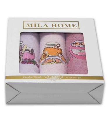 Салфетки Mila Home 30*50 3 штуки, от известного турецкого производителя изготовлены на новейшем оборудовании под пристальным контролем. В состав изделия входит 100% натуральный хлопок высшего сорта. Ткань исполнения – двухсторонняя петельчатая махра высокой плотности. В комплекте однотонные изделия розового, сиреневого, молочного оттенка и изумрудного цвета. Текстиль украшен красивой вышивкой в виде разнообразных кексов, кухонного инвентаря, присутствуют узоры в стиле "Прованс". Поставляется в подарочной коробке из картона с логотипом фирмы.