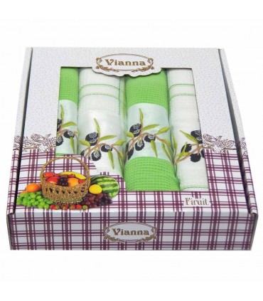 Салфетки Vianna Premium 45*65 (4 штуки) вафельные, от турецкого производителя, который широко известен на европейском рынке. Продукция соответствует международным стандартам качества и безопасности. В состав изделия входит 100% хлопок. В комплект идет две белых и две цветных ярких салфеток. Украшением служит вышивка на фруктовую и овощную тематику. Текстиль смотрится очень броско и оригинально, станет чудесным дополнением любого интерьера. Комплектуется в подарочную упаковку из картона с логотипом фирмы.
