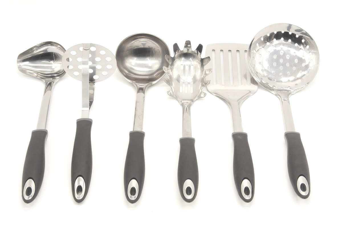 Кухонные наборы состоят из принадлежностей, без которых сложно представить современную кухню. Используя кухонные принадлежности, можно значительно упростить процесс и сократить время приготовления блюд. Набор из нержавеющей стали, ручки изготовлены из силикона. Такой набор станет хорошим и практичным подарком, и долго прослужит помощником на кухне.