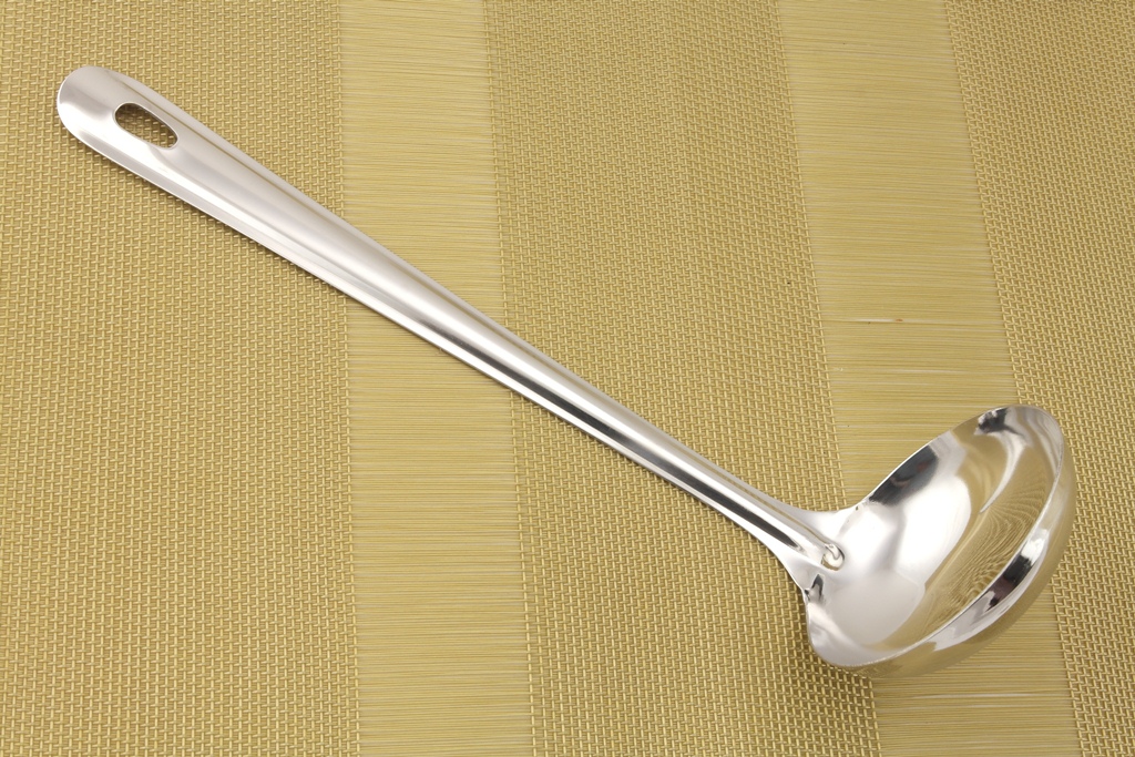 Половник - приспособление для разливания жидкой пищи. В каждом доме имеется половник для разлива первых блюд, соусов, компотов, киселей и т.п. Предлагаемая модель выполнена из нержавеющей стали, экологичная, прочная и долговечная. Имеет удобную ручку с отверстием для подвешивания. Лаконичный стильный дизайн подойдет к интерьеру любой кухни. Длина - 27 см