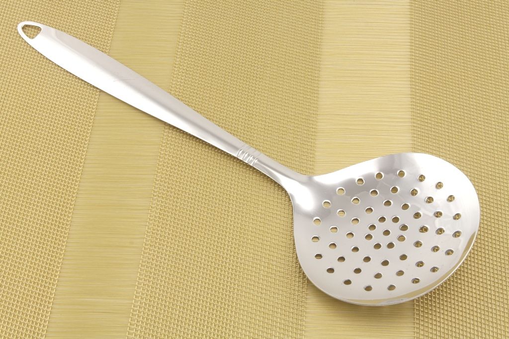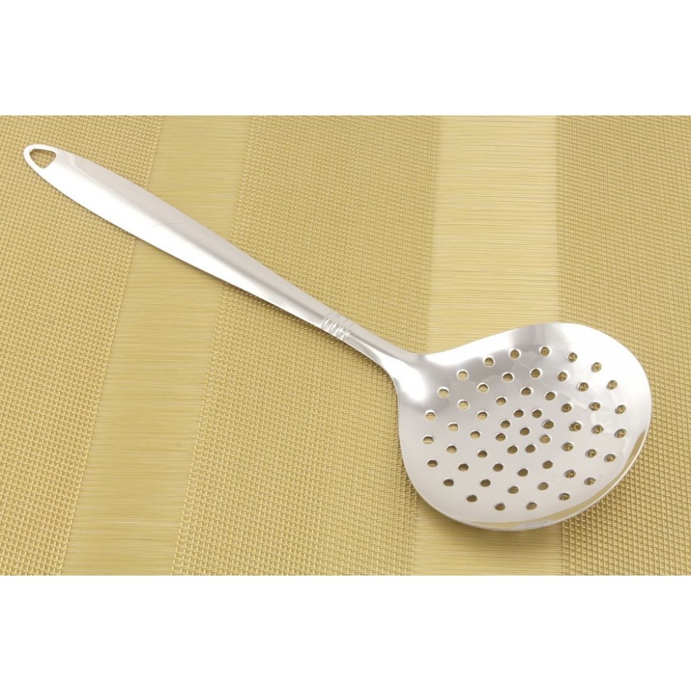 Набор кухонных принадлежностей не будет полным без шумовки. Используется для снятия пены, для извлечения продуктов из бульонов (мяса, рыбы, вареников, пельменей и т.д.). Изготовлена из высококачественной нержавеющей стали. Шумовка легко моется, также пригодна для мытья в посудомоечной машине. Имеет удобную ручку с петлей для подвешивания. Лаконичный стильный дизайн подойдет к интерьеру любой кухни. Длина шумовки - 32 см