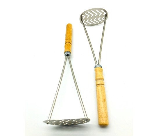 ТОЛКУШКА ОВАЛЬНАЯ С ДЕРЕВЯННОЙ ЛАКИРОВАННОЙ РУЧКОЙ – КУХОННОЕ ПРИСПОСОБЛЕНИЕ, КОТОРОЕ ПРЕДНАЗНАЧЕНО ДЛЯ ПРЕВРАЩЕНИЯ ВАРЕНЫХ ОВОЩЕЙ В ПЮРЕ.