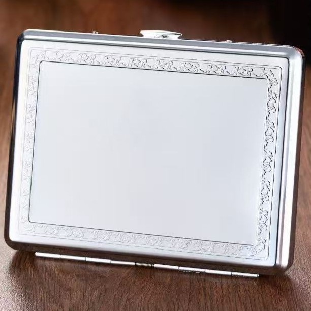 Элегантный портсигар из качественного металла с изящным узором по периметру. Подходит для хранения сигарет, защищает их от повреждений и влаги.