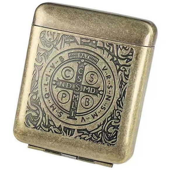 Металлический портсигар с крестом Святого Бенедикта — изысканный и практичный аксессуар, сочетающий стиль, символику и удобство.