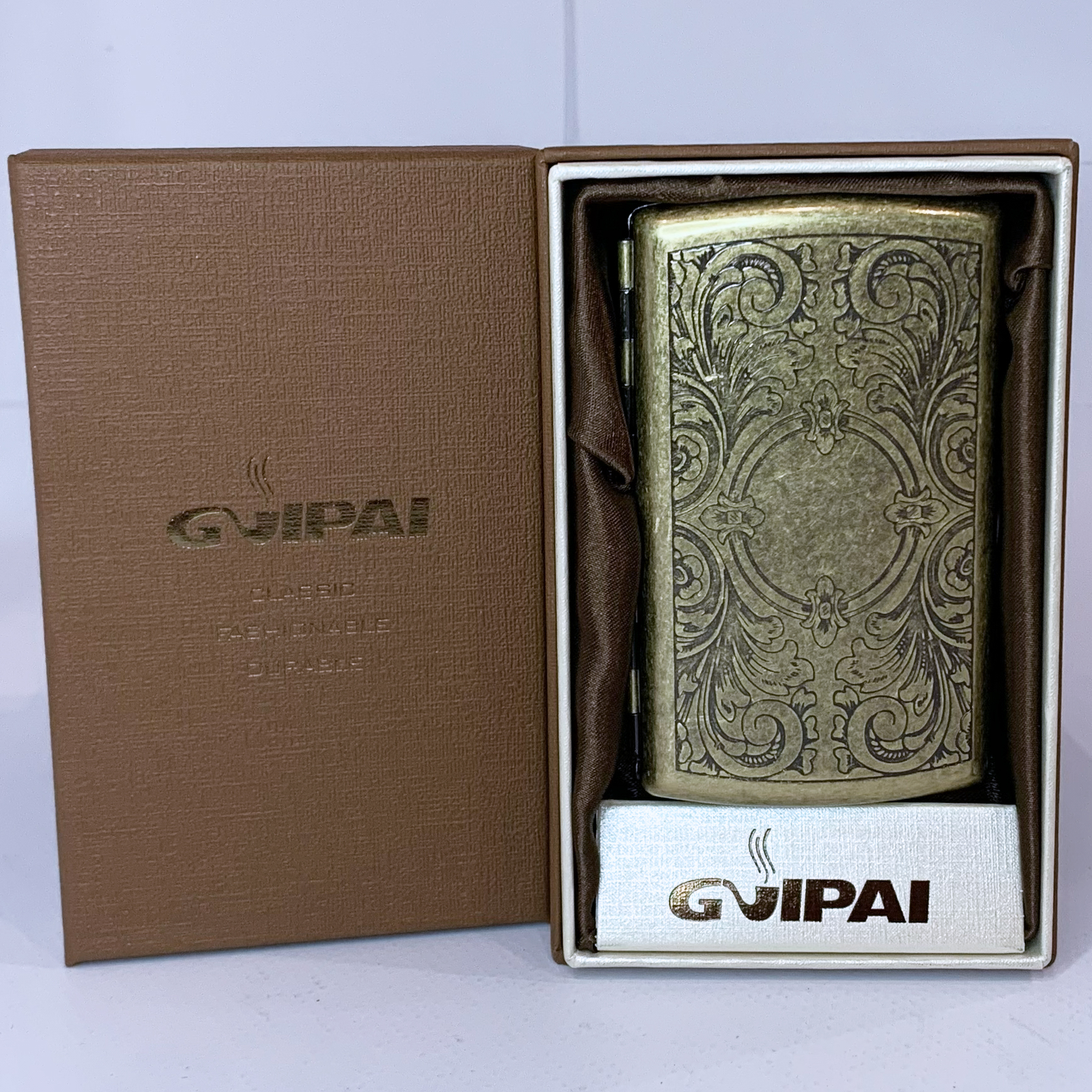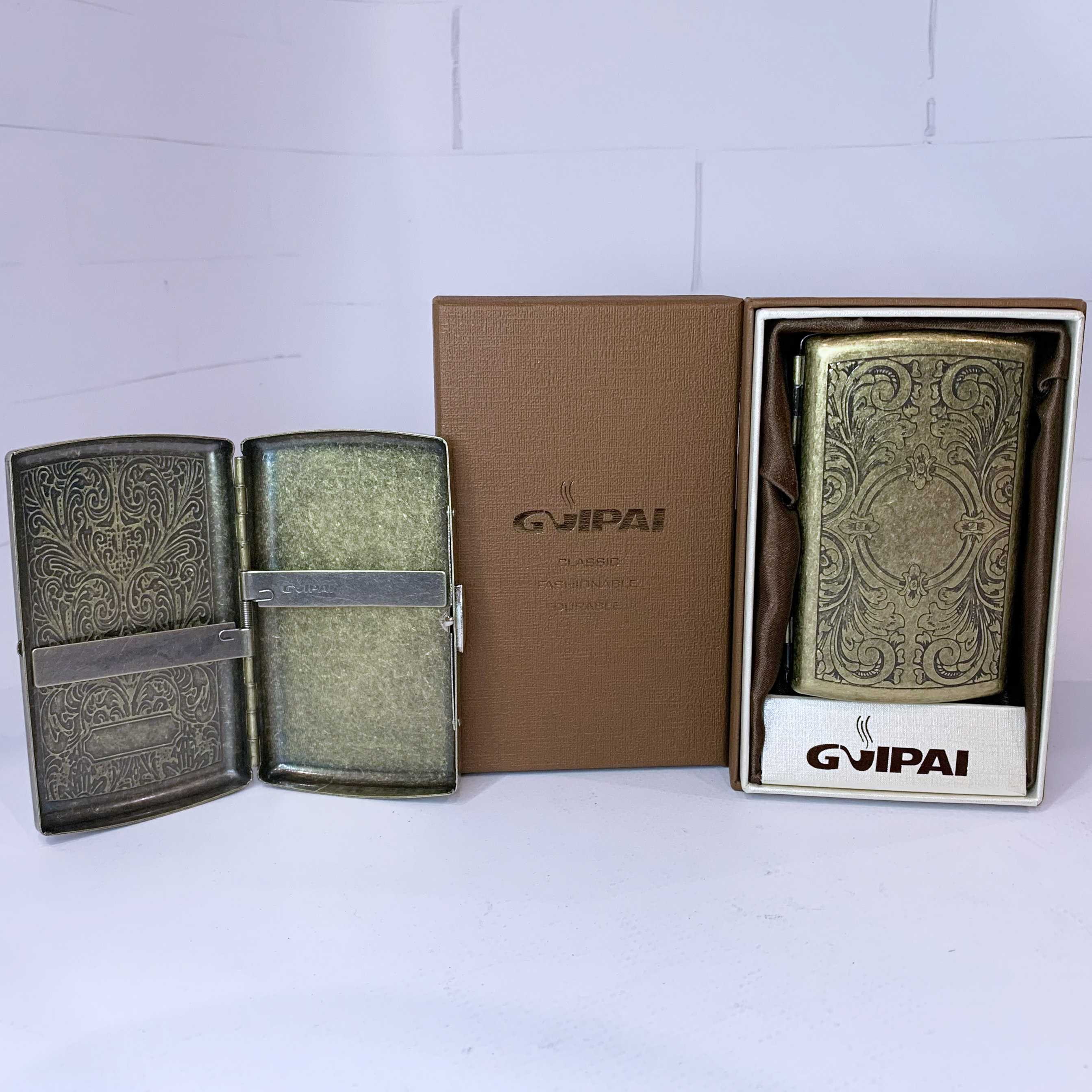 Стильный портсигар в винтажном стиле, выполненный из прочного металлического сплава с бронзовым покрытием. Украшен изящной гравировкой с орнаментами, что придаёт ему антикварный характер и делает эффектным аксессуаром. Компактный размер позволяет удобно носить его в кармане или сумке, а прочный корпус надёжно защищает сигареты.