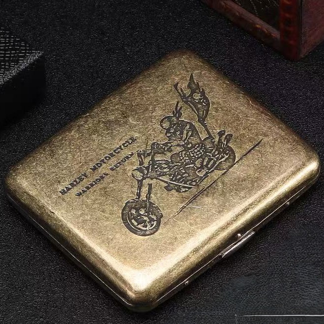 Металлический портсигар в винтажном стиле с гравировкой байкера HL-702-3 / 7023-3-1
