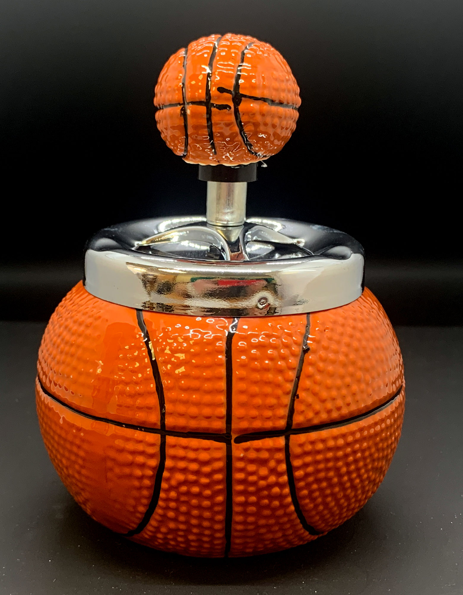 Керамическая пепельница с крышкой "Баскетбольный мяч". Это стильное и практичное изделие, которое обязательно понравится всем любителям баскетбола.