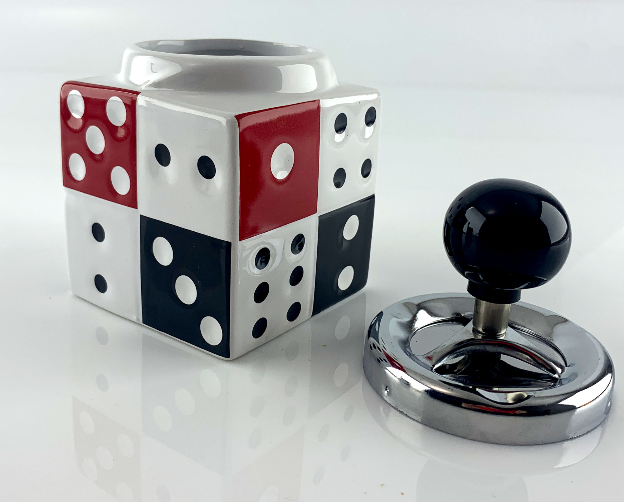 Стильная и элегантная пепельница "Юла" с уникальным изображением игральных костей! Эта керамическая пепельница, выполнена в белом, черном и красном цветах, четырехгранной формой, сочетает в себе яркий дизайн и удобство использования.
