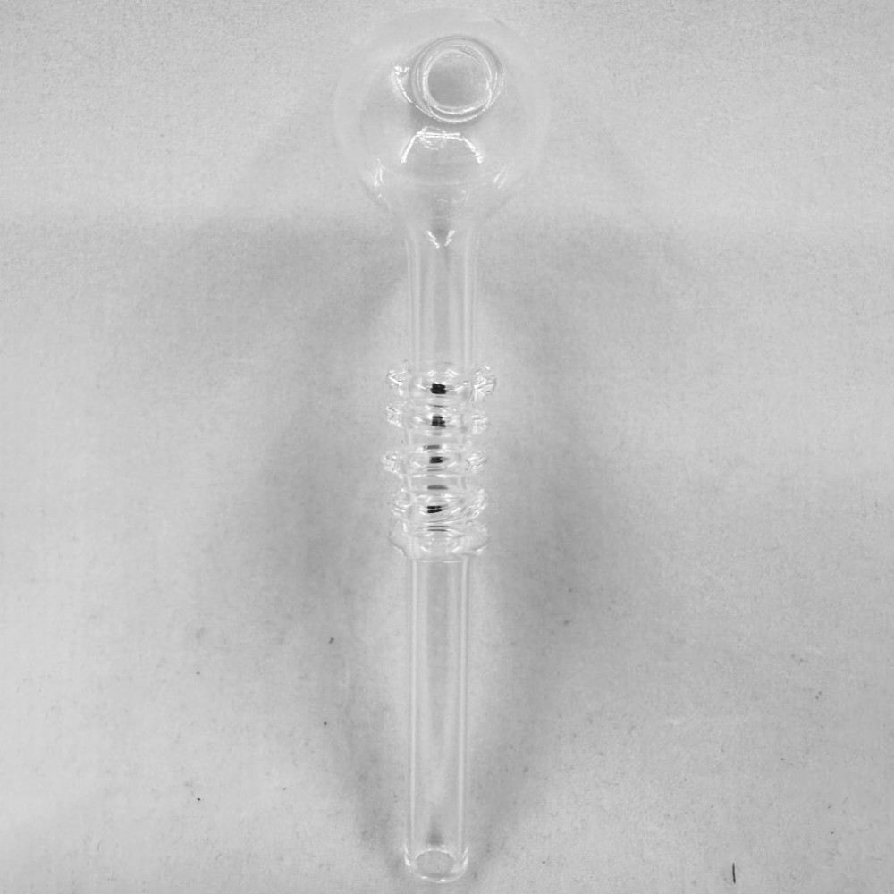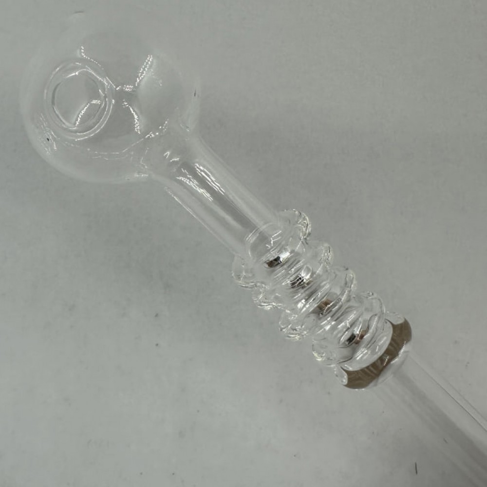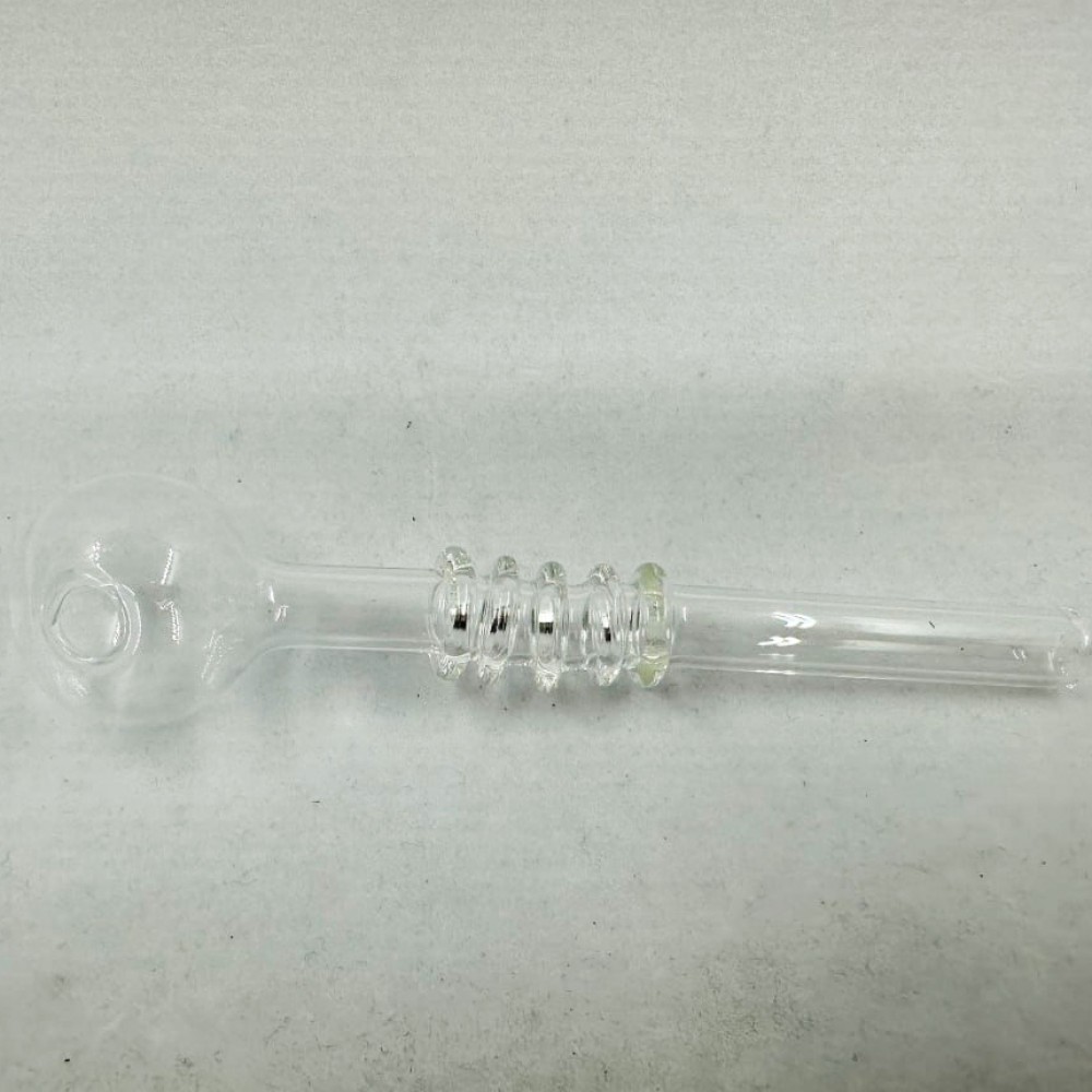 Эта стеклянная трубка отличается оригинальным дизайном: прозрачный корпус дополнен рельефным утолщением в центральной части, которое не только придаёт изделию необычный вид, но и делает его более удобным в использовании.
