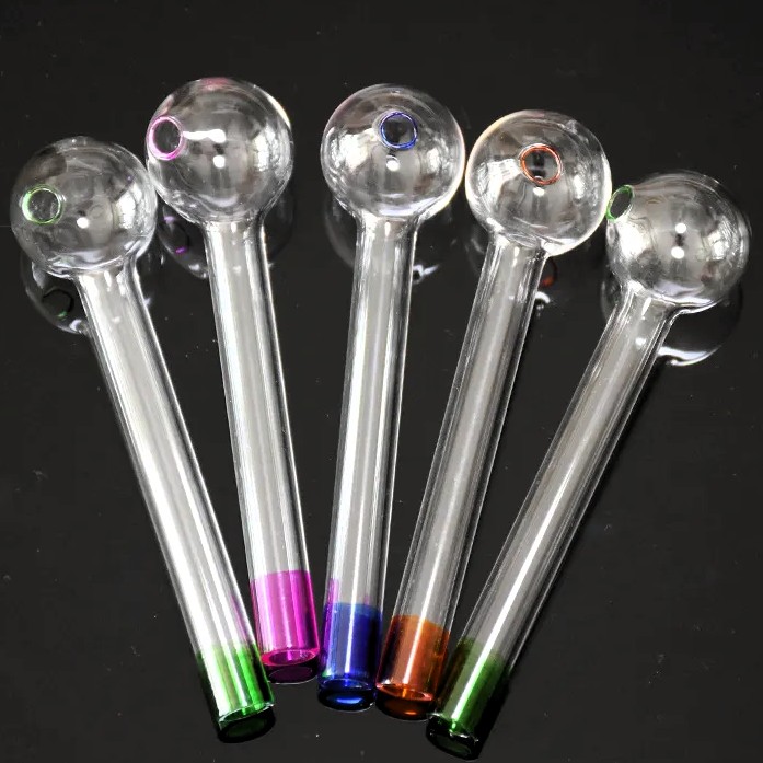 Компактные стеклянные трубки — это универсальный курительный аксессуар, который сочетает простоту формы и яркий дизайн. Прозрачное тело трубки дополнено цветными акцентами на основании и в области чаши: зелёный, фиолетовый, синий, оранжевый.