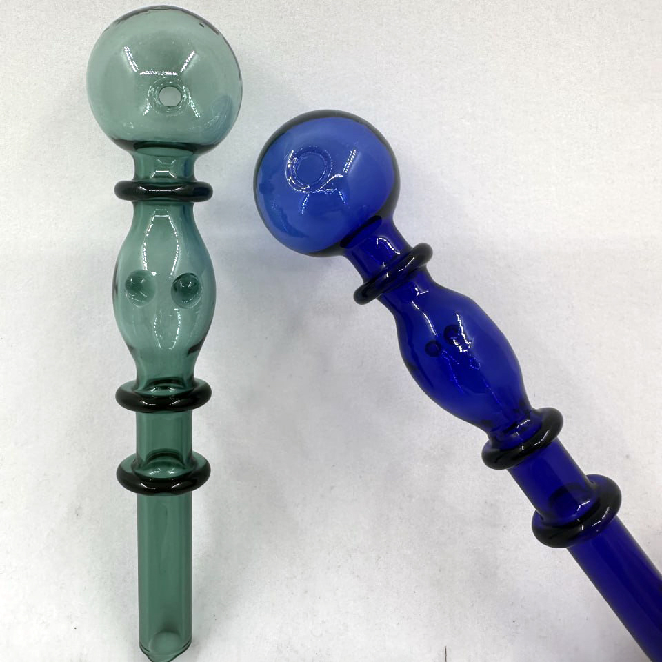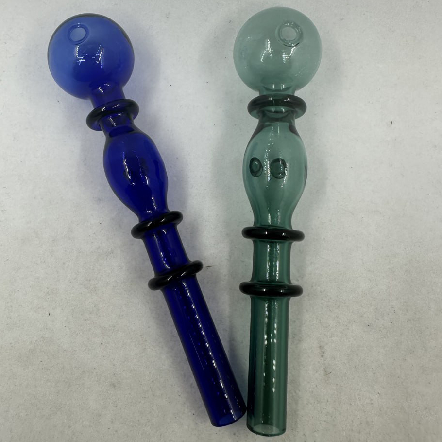 Эти оригинальные стеклянные трубки выполнены в стильном дизайне с утолщённой центральной частью и декоративными кольцами, которые обеспечивают удобный хват и придают изделию необычный вид.