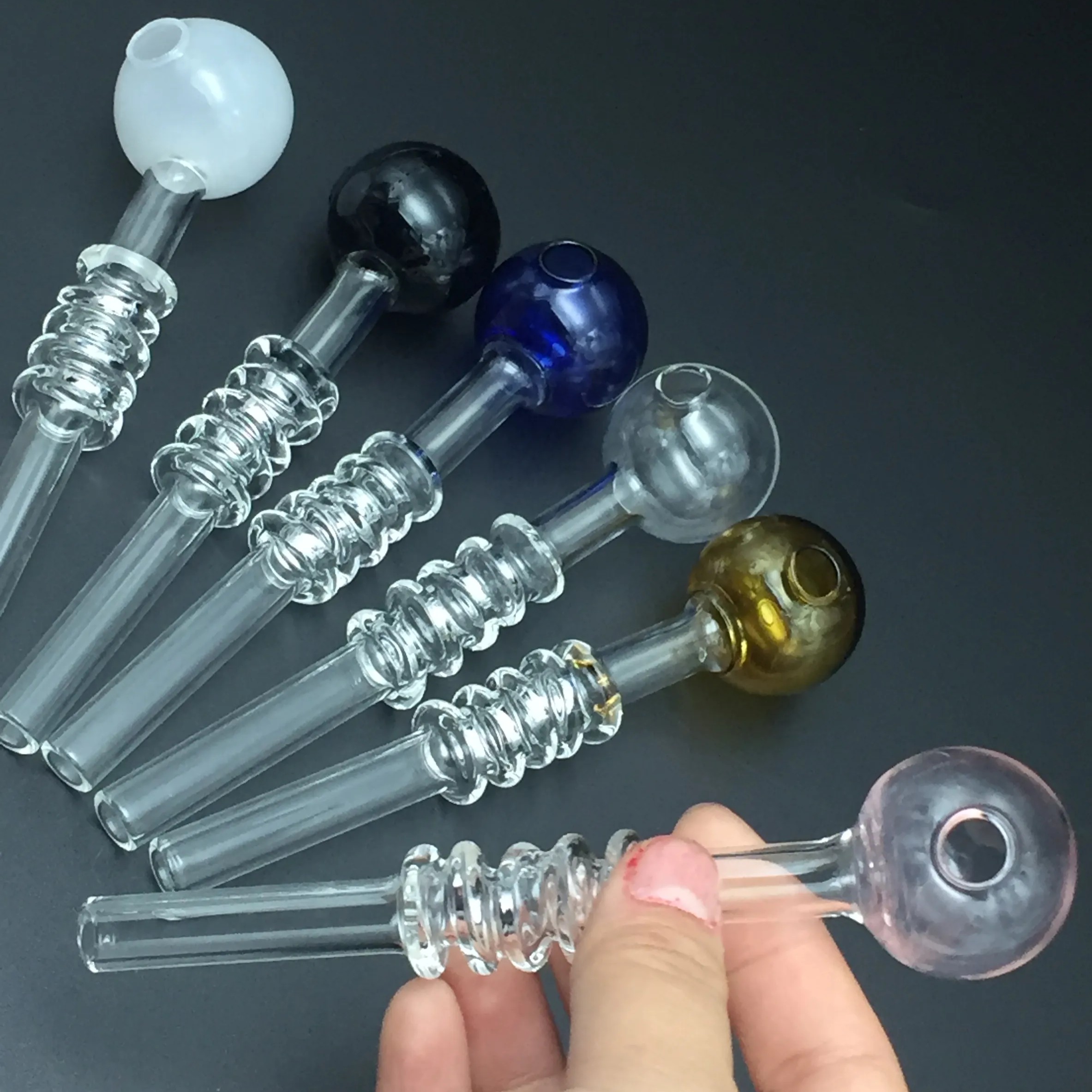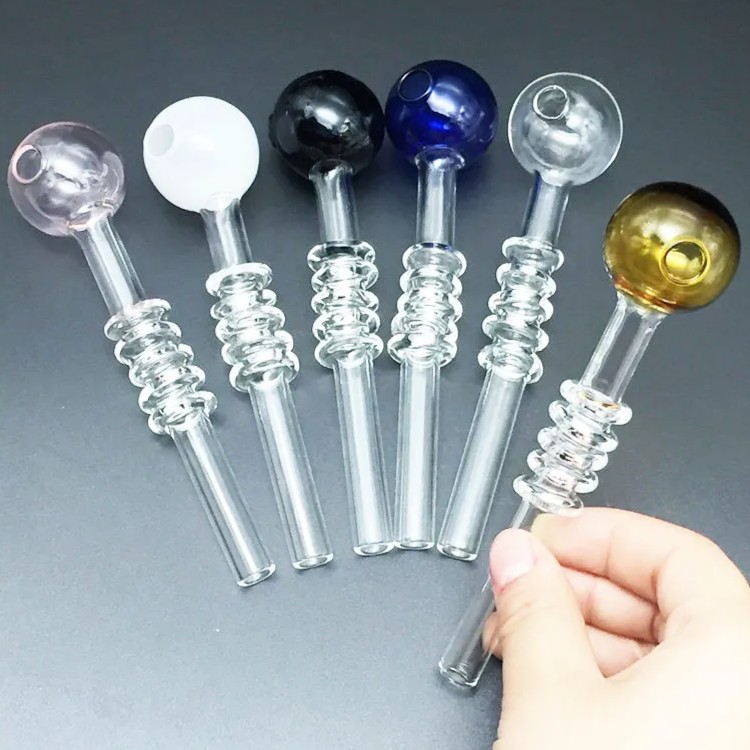 Стеклянные трубки для курения с рельефным утолщением и цветной чашей HL-747