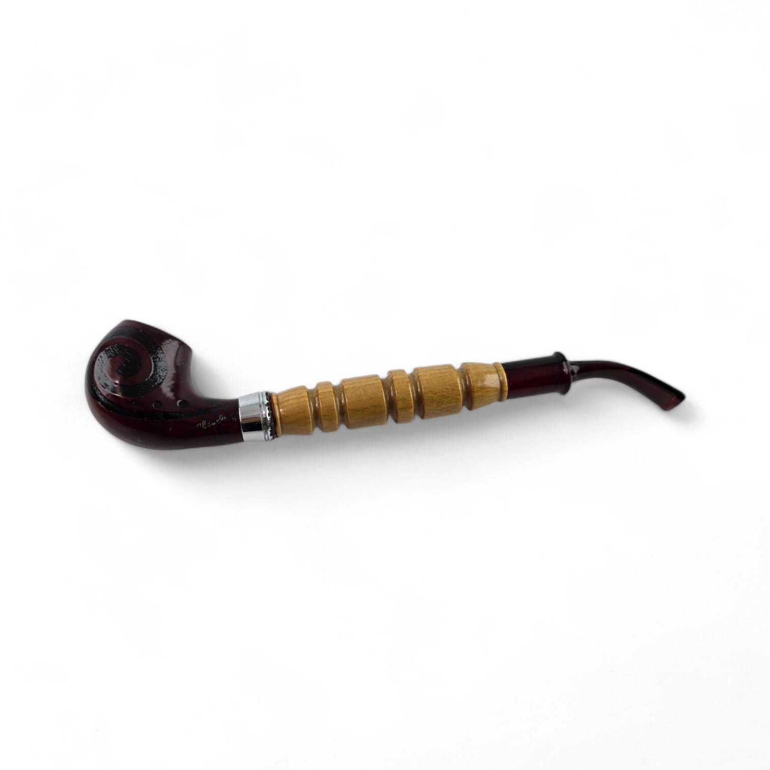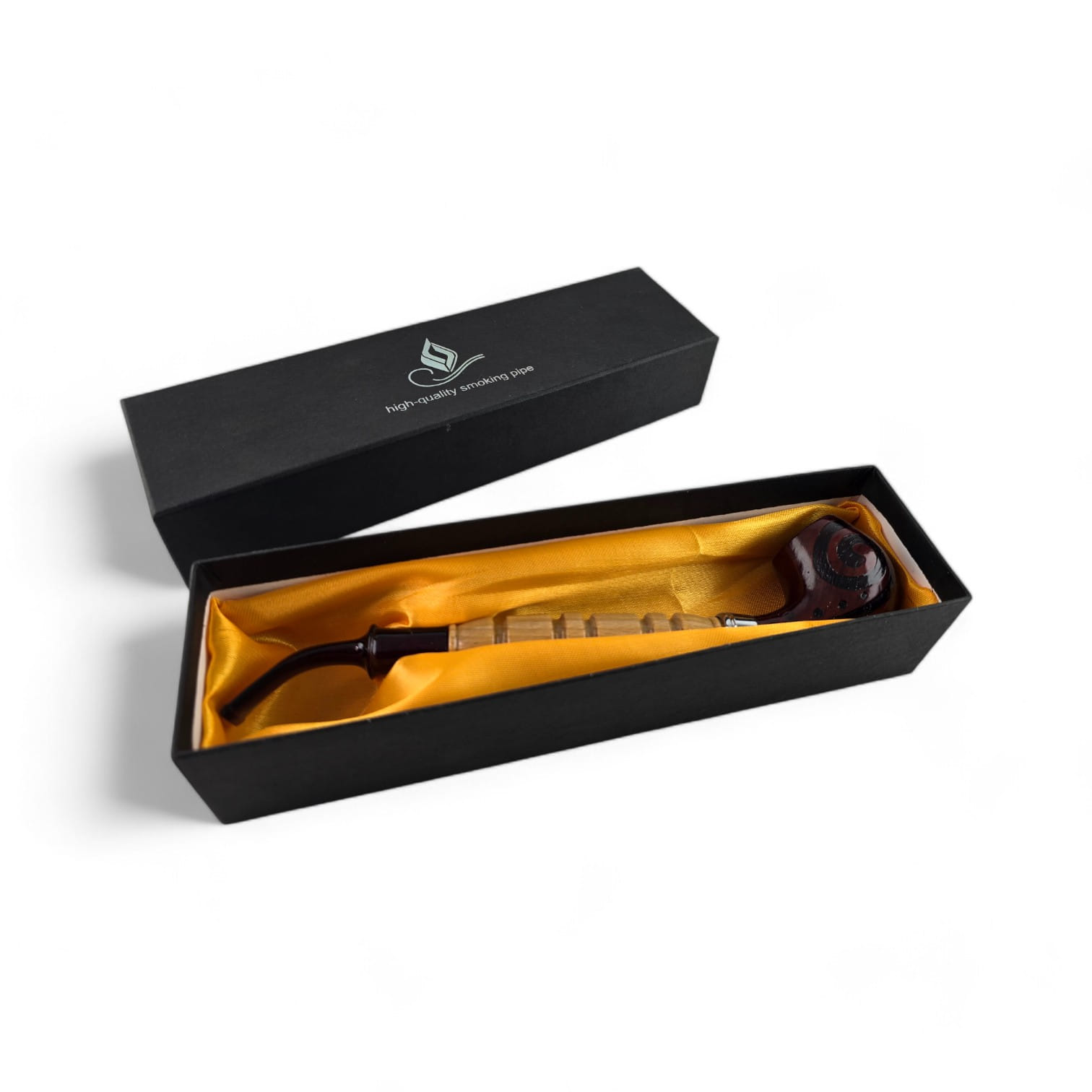 Погрузитесь в атмосферу элегантности с этой изысканной курительной трубкой. Трубка выполнена в классическом стиле с изогнутым мундштуком, который удобно лежит в руке и обеспечивает комфортное курение.