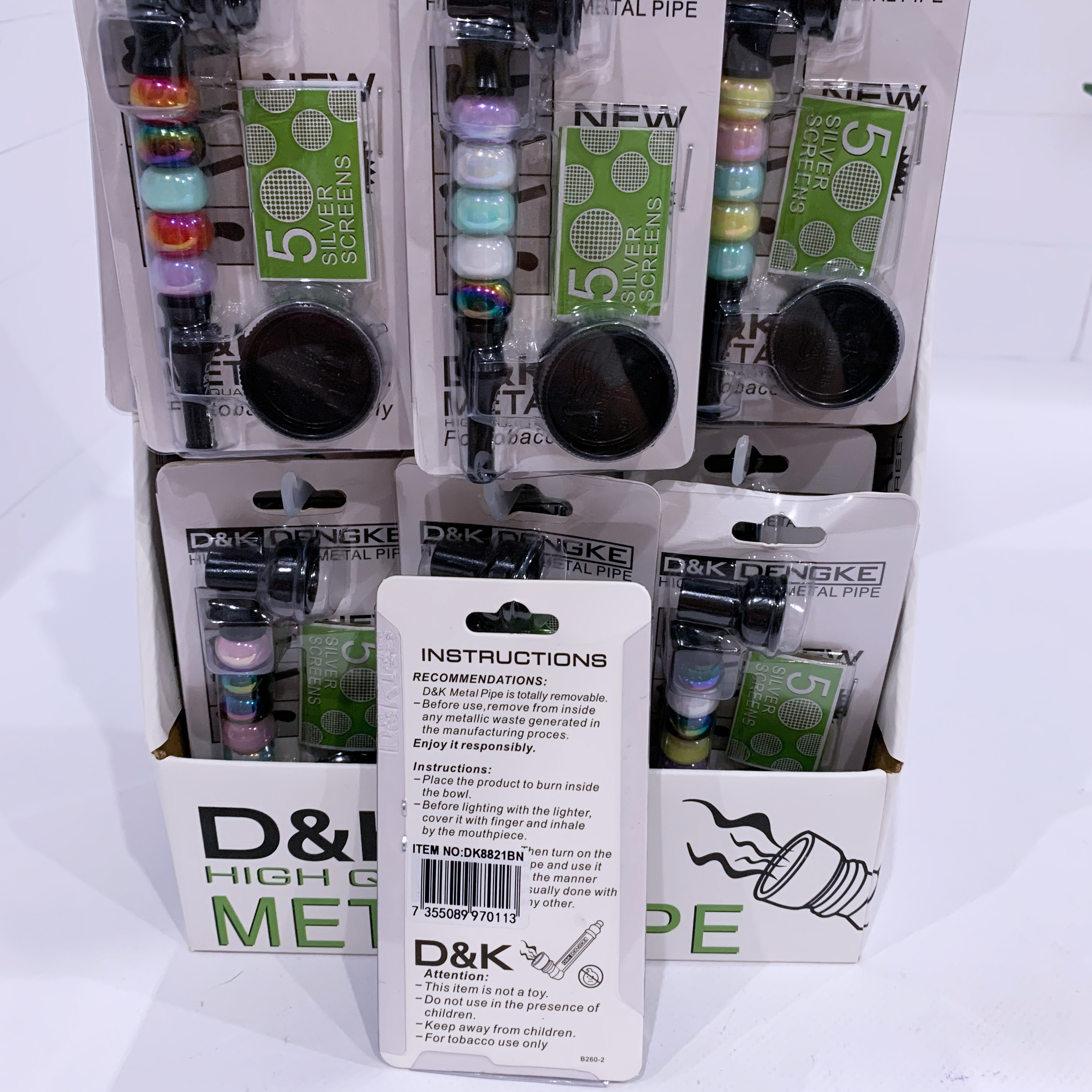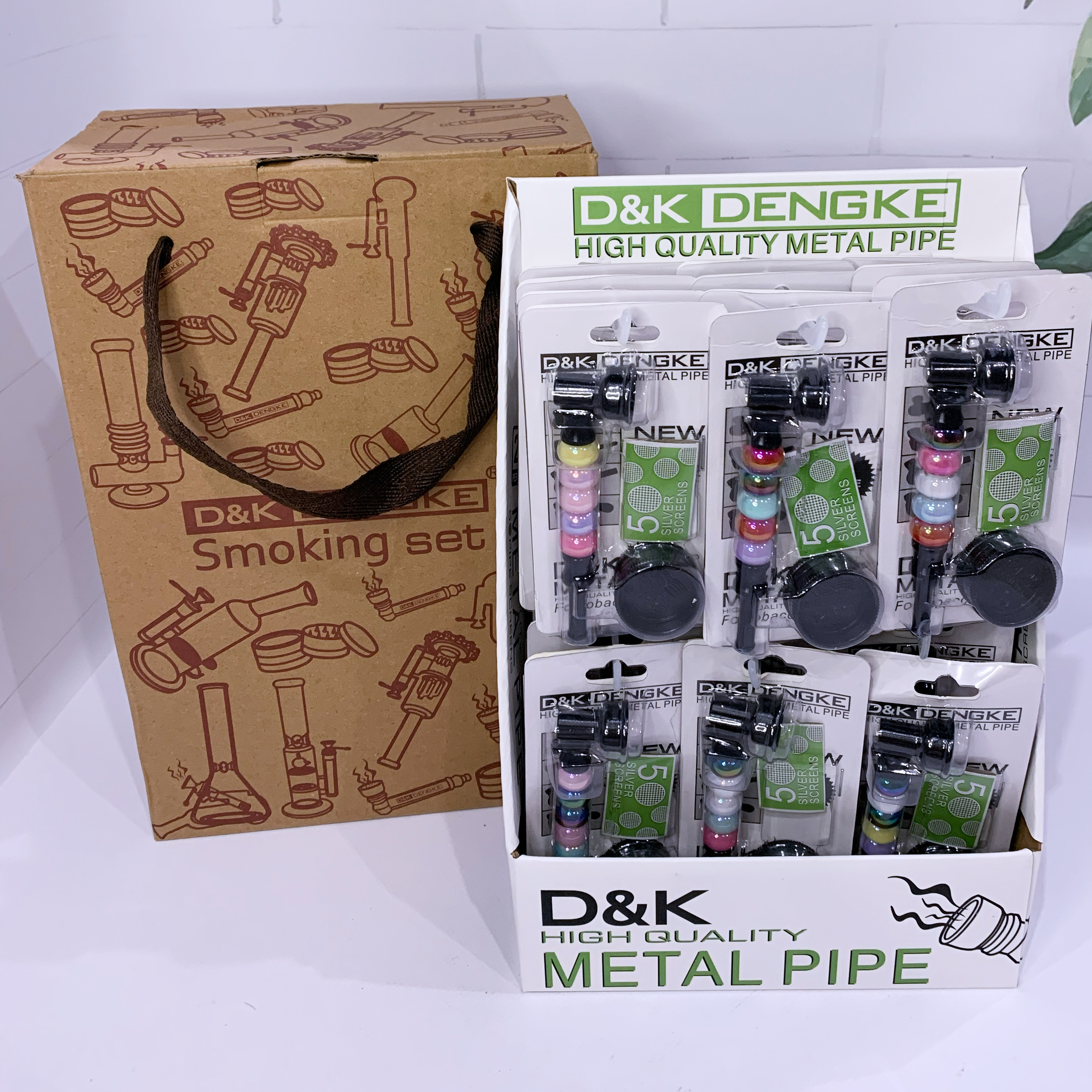 Компактная металлическая трубка D&K Dengke — стильный и практичный аксессуар для курения табака и сухих трав. Корпус изготовлен из прочного металла и украшен декоративными перламутровыми бусинами, благодаря чему каждая трубка выглядит эффектно и отлично подходит для витринной продажи.