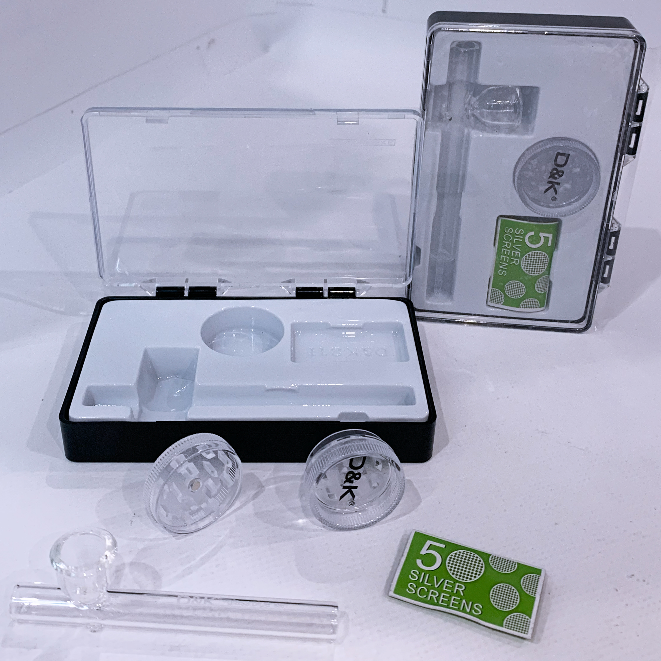 Компактный и стильный набор D&K — идеальное решение для аккуратного хранения и использования аксессуаров для курения. Все элементы аккуратно размещаются в прочном пластиковом кейсе, который защищает содержимое от повреждений и посторонних запахов.