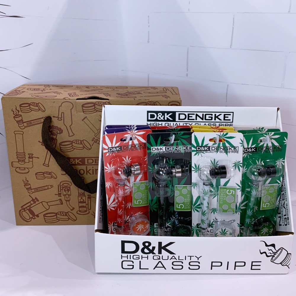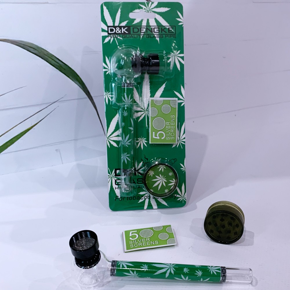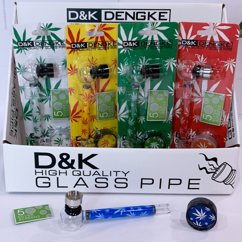 Яркая стеклянная трубка D&K DENGKE — практичный и стильный аксессуар для курения. Изделие выполнено из прозрачного термостойкого стекла и дополнено сменными металлическими сетками. В комплект также входит компактный гриндер для подготовки табака.