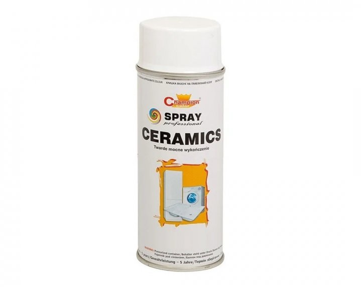 Эмаль-краска аэрозольная Champion КЕРАМИКА для ремонта эмалированных и керамических поверхностей.
