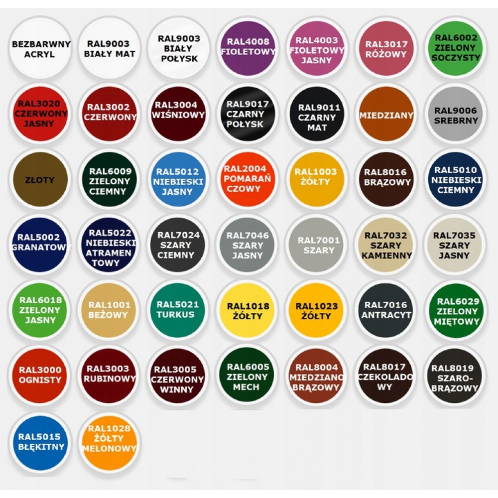 модифицированный алкид (акрил для золотого металлика, хрома RAL9006 и прозрачного) |