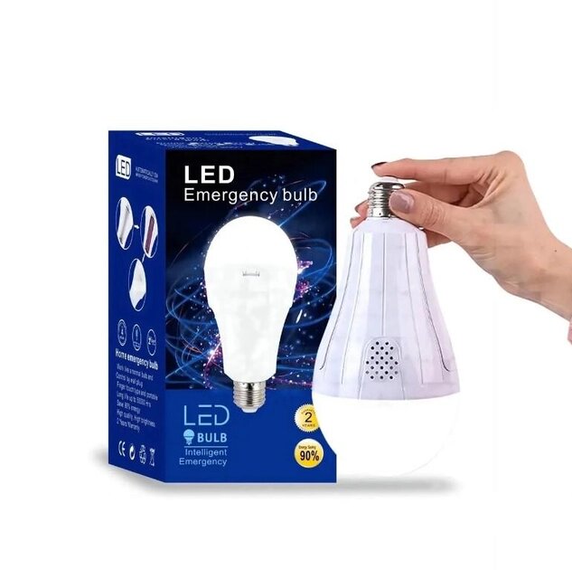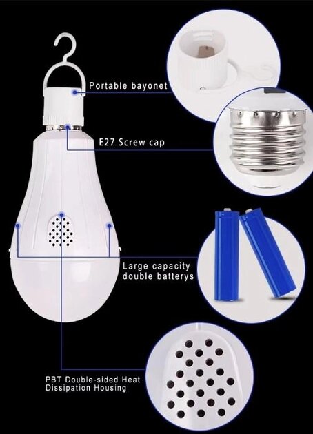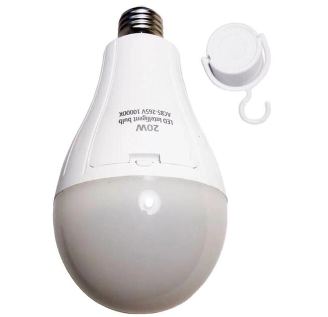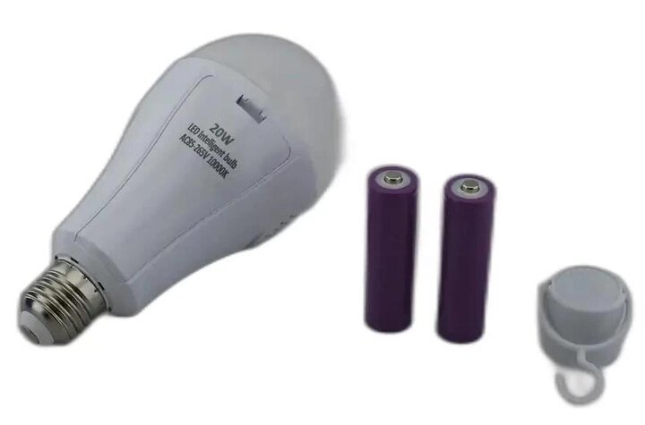 Лампочка с аккумулятором E27 2x18650 20W светодиодная, 2 режима: от 220В и автономно