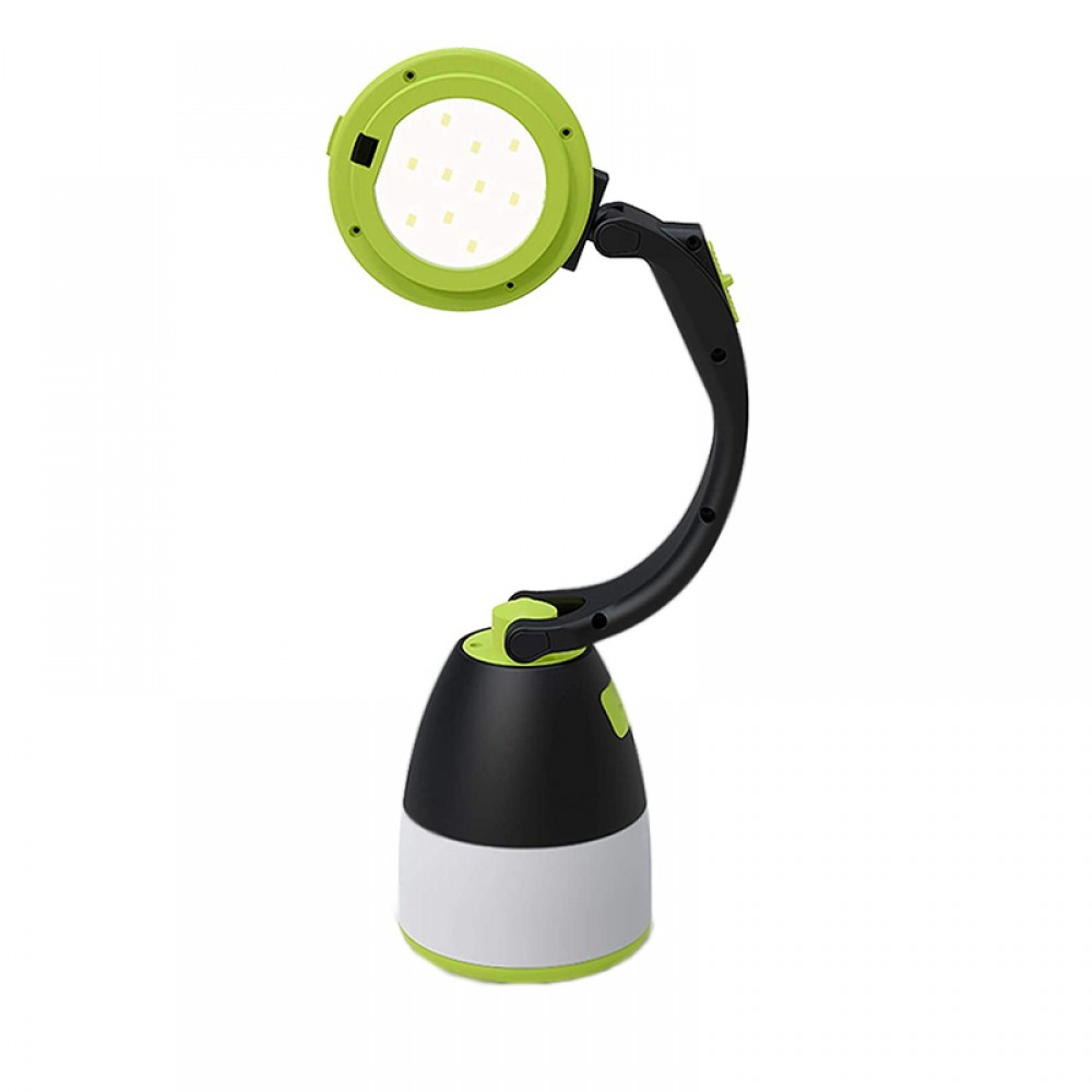 LED светильник настольный многофункциональный зелёный+чёрный EH EH-LMT-06 бренда Electro House – это аккумуляторный светильник - трансформер отличающийся необычным дизайном и оригинальным конструктивным решением. Его можно преобразовать в стильную и функциональную настольную лампу, использовать в качестве ночника или ручного фонаря. Функция Power bank позволит заряжать ваше мобильное устройство. Фонарь - трансформер обладает всеми достоинствами туристических светильников: малый вес, компактность, ударопрочный влагозащищенный корпус, высокая автономность и большой диапазон рабочих температур. Он будет полезен не только для любителей отдыха на природе, но и в различных бытовых ситуациях. Его можно использовать как резервный или дополнительный источник освещения.